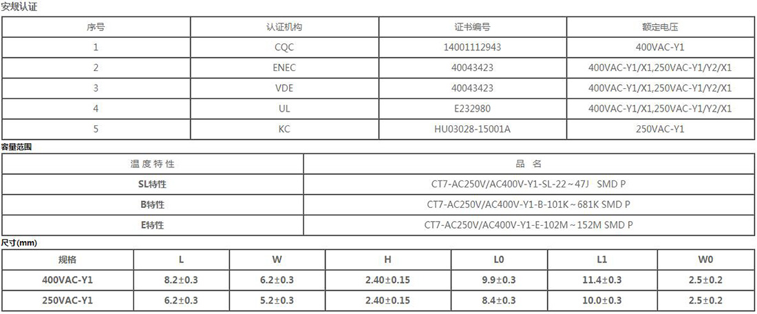 - X1/Y1系列電容器取得UL/CQC/VDE/ENEC/KC等安全認(rèn)證